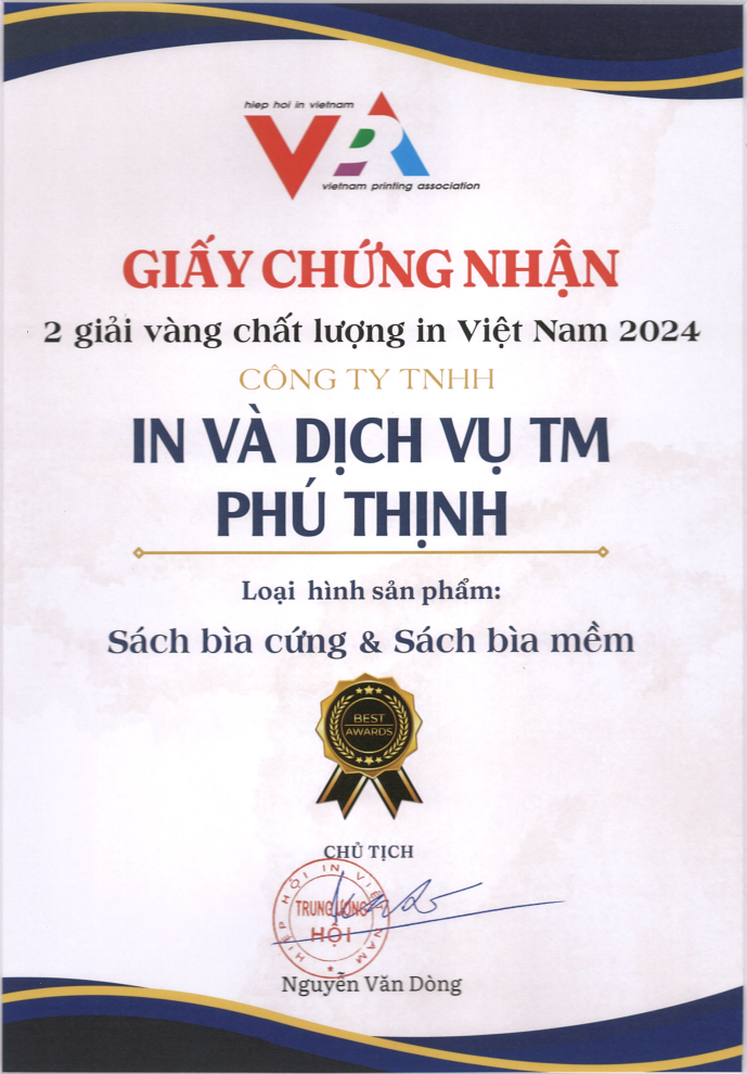 In Phú Thịnh đạt Giải Vàng Sách Bìa Cứng và Sách Bìa Mềm tại Hội nghị Thường niên Hiệp hội In Việt Nam 2024